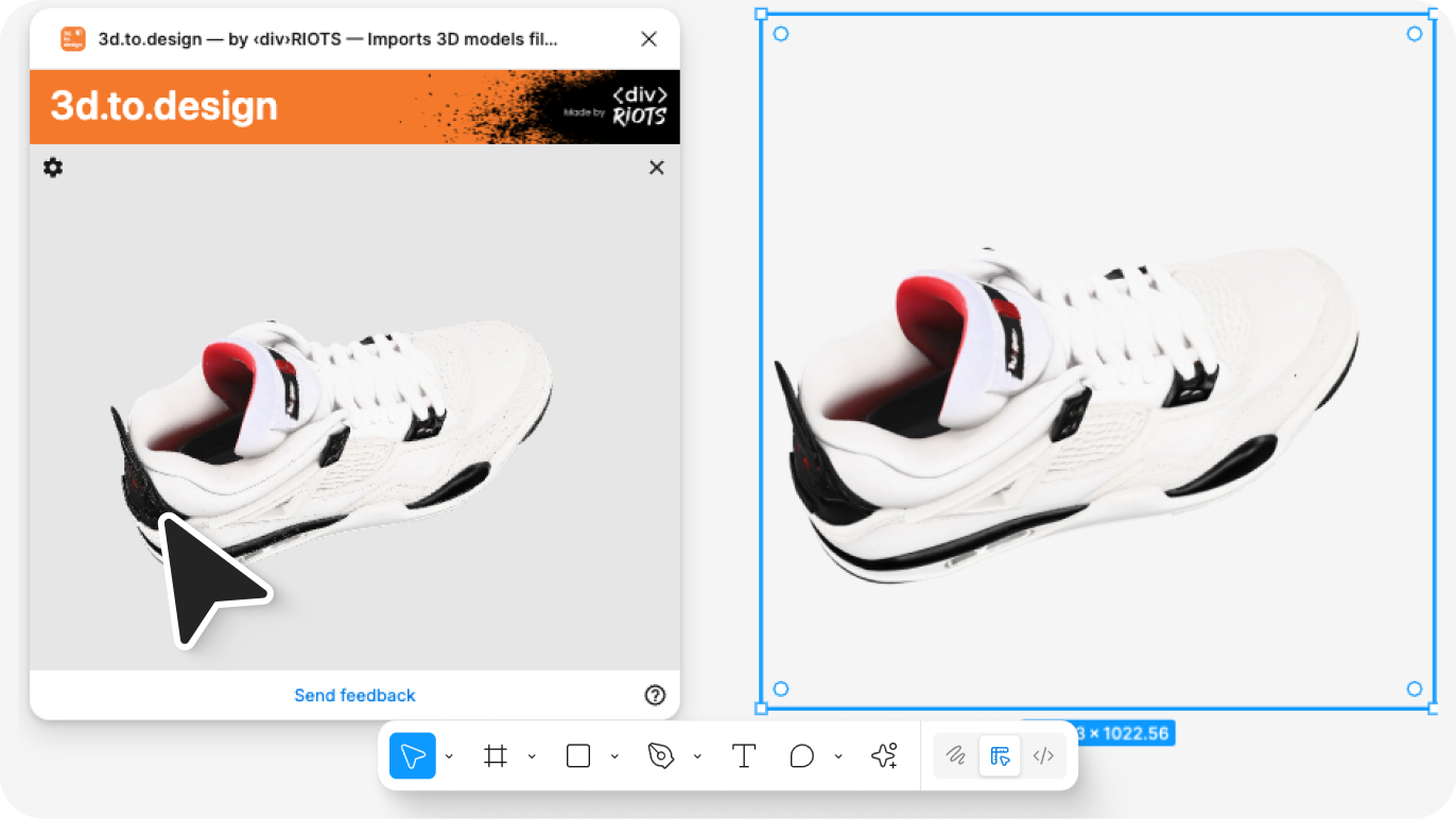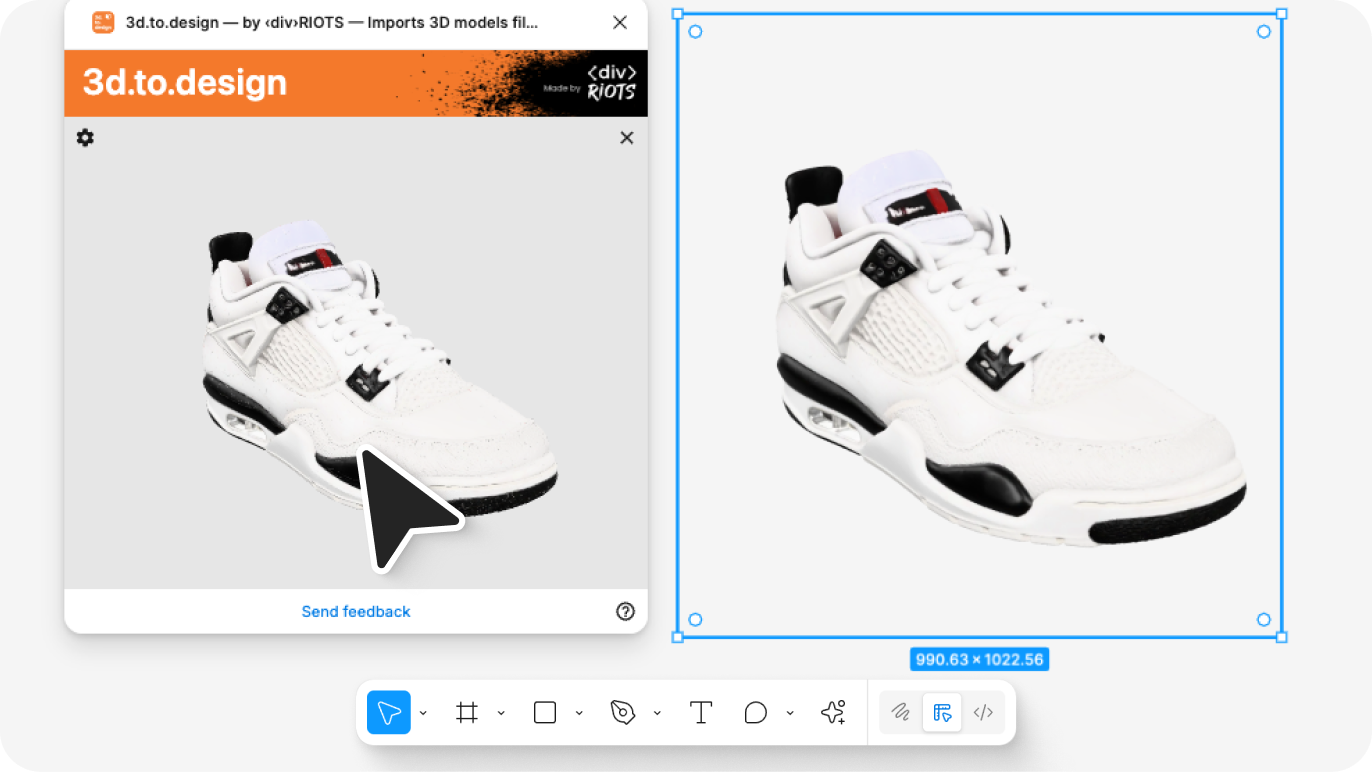 Figma has no native 3D capability. The standard workaround — render externally, export, import as a flat image — produces a static asset with no angle flexibility. 3d.to.design removes both limitations: the AI generates a 3D version of any flat image, and the result stays re-adjustable directly in Figma.