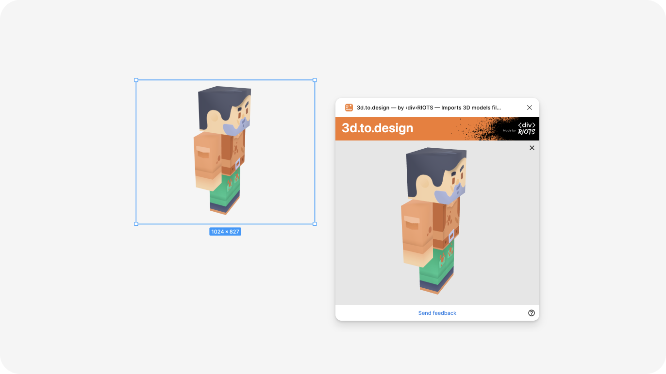 ✅ Import models at the largest size you'll need. You can scale down in Figma without quality loss, but scaling up may reveal pixelation. If you need a model at multiple sizes, import it once at the largest size, then duplicate and scale down as needed.