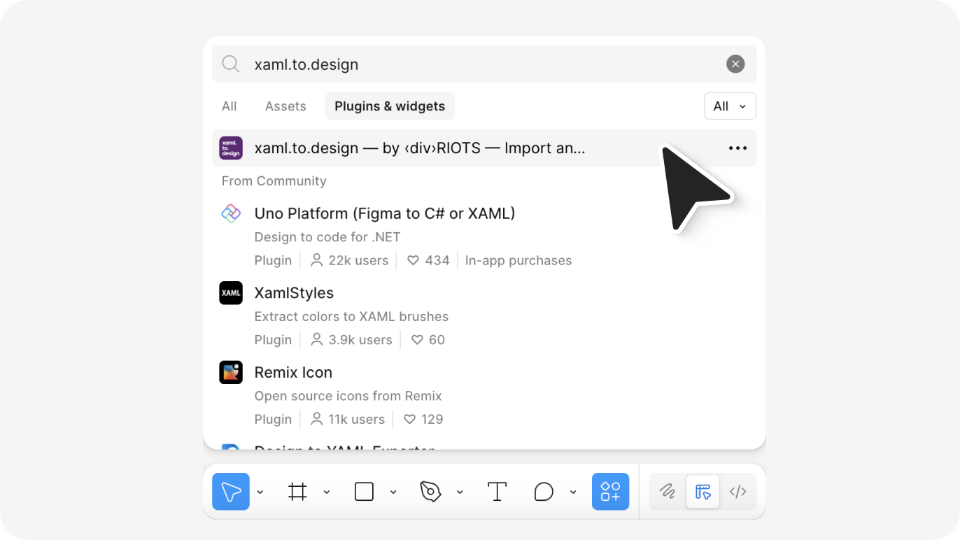 Install xaml.to.design from the Figma Community to import your first XAML file. The plugin specializes in converting Windows application interfaces, giving you a dedicated tool for bringing XAML development artifacts into your design workflow.